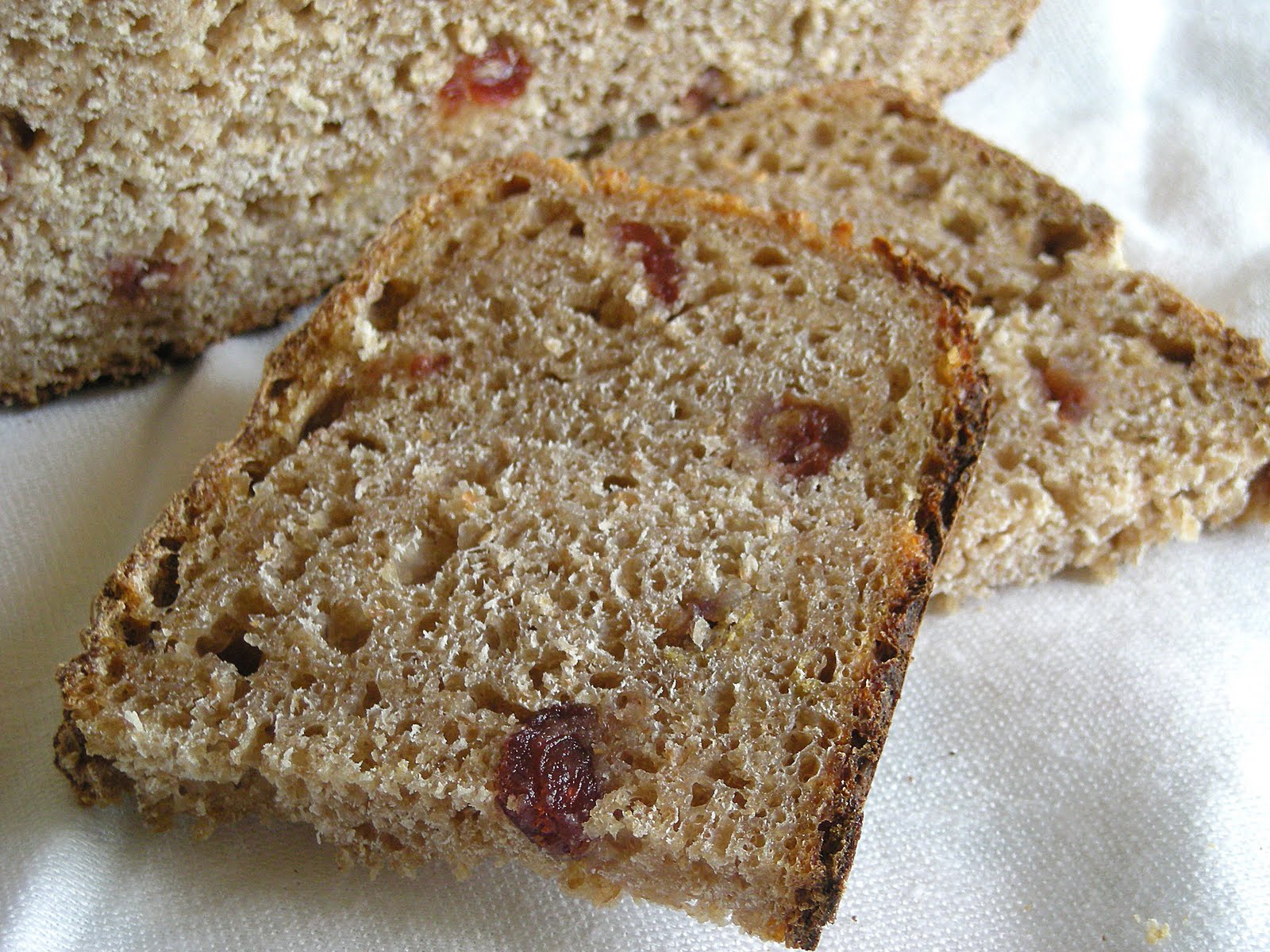 Posted On 29.03.2010 at a poniedziałek, marca 29, 2010 by KonstiPrzepis od Mirabbelki; nic w nim nie zmieniałam, oprócz tego, że wzbogaciłam całość o żurawinę. Już od dawna miałam ochotę na pieczywo z dodatkiem żurawiny i w końcu dopięłam swego:) Ponieważ użyłam razowej mąki orkiszowej, to zdecydowałam się na pieczenie w formie. Troche się martwiłam, że nic z tego wypieku nie będzie, bo chleb bardzo wolno wyrastał, ale moje obawy okazały się bezpodstawne - po wielu godzinach oczekiwania w końcu z piecyka wytoczył się ciemny, dobrze wypieczony bochen lekko pachnący żurawiną. Bardzo smaczny!
